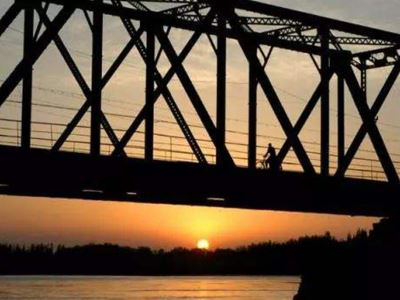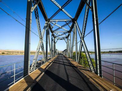 青铜峡黄河铁桥位于青铜峡黄河大峡谷景区入口处,是宁夏境内第一座黄河大桥,1959年7月1日竣工通车,由兰州铁路局桥梁工程队设计搭建,主要是为青铜峡水利枢纽工程及黄河两岸运输物资而建。铁桥上部为美国、英国、加拿大制造的上承式钢桁架梁,下部桥墩采用木桩及铅丝笼块石结构,全长292米。铁桥承载着宁夏创业者艰苦奋斗、自力更生的厚重历史,作为一处具有代表性的近现代工业遗产,2010年12月被自治区人民政府列为第四批自治区级文物保护单位,2011年12月被国家文物局评选为第三次全国文物普查“百大新发现”。